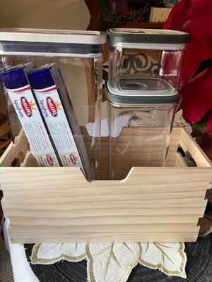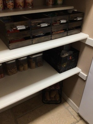 This is a narrow bin made by Brightroom that is perfect for getting your pantry organized. I love that Brightroom offers these wood bins in a variety of sizes. Nice quality and well priced, I'll be buying more!