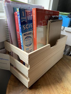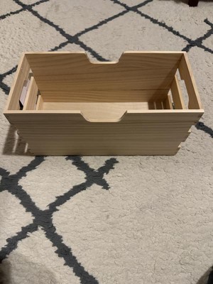 Organize with ease using this Narrow Wood Bin from Brightroom™. Made of wood, this open-top bin has slats on the sides plus cutouts for easy holding. Designed in a rectangular shape, this wooden bin has a capacity of 418 cubic inches, giving you plenty of space for storing toys, clothes, books and more.