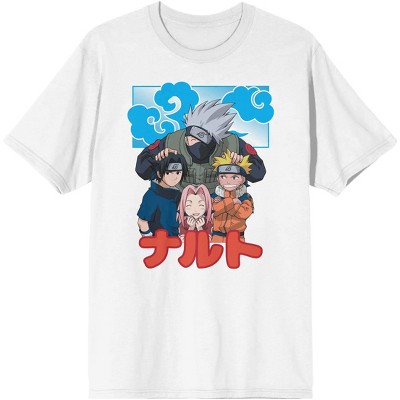 Naruto Classic Group Squares Crew Neck Short Sleeve Men's White T-shirt
