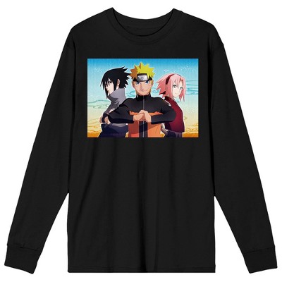 Celebrate your favorite anime characters with this Naruto tee. The shirt features an image of Sakura Haruno wielding a bladed weapon next to vertical ink kani letters. The anime's logo appears in orange above the image. The tee comes in a black short sleeve crew neck. Fans of the classic Naruto series will love the fun design on this t-shirt.