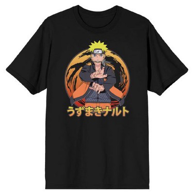 • GRAPHIC TEE: A line art drawing of the anime ninja Naruto Uzumaki decorates this graphic tee. The character's name appears in red in English and kanji characters. Fans of the anime series will love this t-shirt.