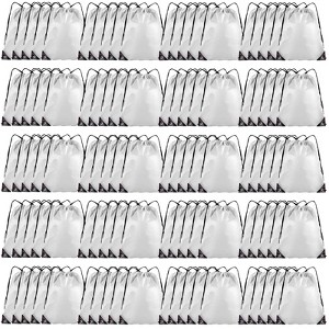 Narwey Drawstring Backpack Bulk 100Pcs Cinch Bag, Polyester Drawstring Bags (White)