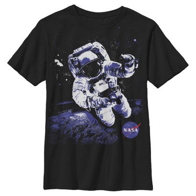 • GRAPHIC TEE: An astronaut floats in space in the circle frame on this youth tee as the NASA logo is printed in white letters above the image. This tee makes a great gift for boys interested in space travel.