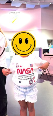 This NASA T-shirt is super cool! love the big red NASA logo and the fun space patches on it. The fabric feels soft and comfy, perfect for a day at the Space Center. It looks great with leggings and shorts !