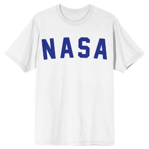 • NOVELTY TEE: Big blue letters spell out NASA on this white t-shirt to celebrate the 1969 moon landing and the continued efforts of space exploration with this tee. Climb in your rocket and reach for the stars in this tee.