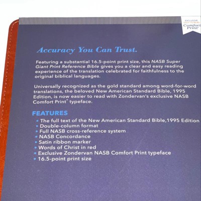 Featuring an extra-large print size and Zondervan's exclusive NASB Comfort Print typeface to accompany the 1995 NASB Text, this reference Bible provides a clear and easy reading experience for readers of all ages and visual abilities.