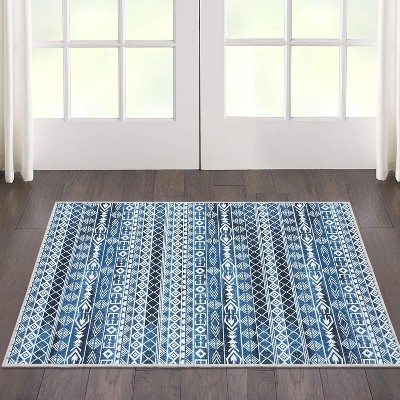Nasitip 2x3FT Washable Area Rug, Non-Slip Floor Carpet, Low Pile Foldable Vintage Boho Rug, Printed Carpets for Bedroom Dining Room OfficeBlue