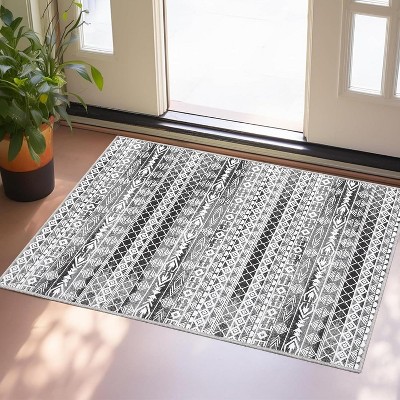 Nasitip 2x3FT Washable Area Rug, Non-Slip Floor Carpet, Low Pile Foldable Vintage Boho Rug, Printed Carpets for Bedroom Dining Room OfficeGray