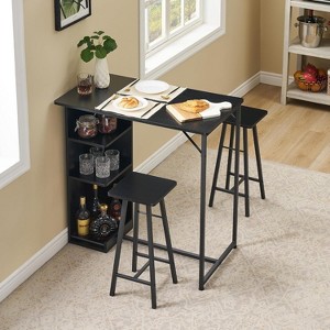 Nasitip 3-Piece Counter Height Bar Table Set with Storage Shelves, Compact Dining Table and 2 Stools for Small Spaces