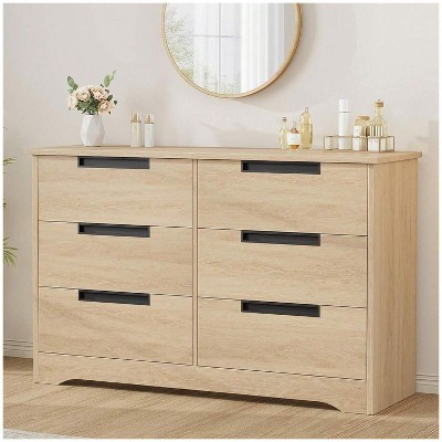 Nasitip 4 Drawer Dresser,Modern Double Dresser Organizer with Embedded Handles Design, Natural Wood