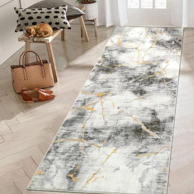 Nasitip Abstract Area Rug, Machine Washable Non-Slip Accent Carpet, Contemporary Art Ink Texture Rug