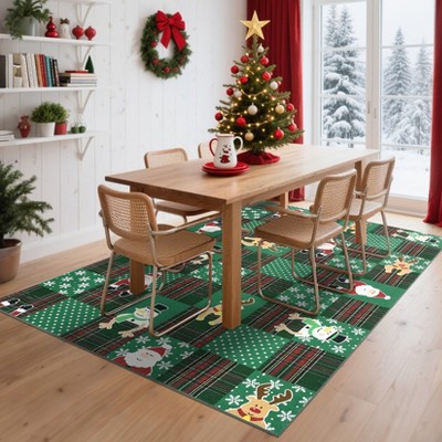 Nasitip Christmas Rug 8*10Ft Green-White Checkerboard Print Non-Slip Washable for Living Room Bedroom Holiday Decor