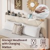 - 【Storage Headboard with Charging Station】The integrated charging base is equipped with 2 125V/12A AC power outlets and a USB port, charged your mobile phone, tablet or laptop while lying comfortably in bed.