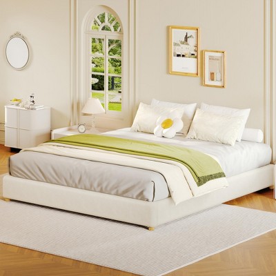 Nasitip King Size Corduroy Upholstered Platform Bed Frame with Adjustable Storage Headboard,No Box Spring Needed,Beige