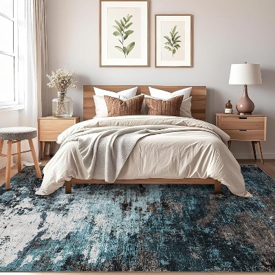 Nasitip Modern Abstract Blue 10'x13' Area Rug for Living Room Bedroom Dining Room,Washable Folding Stain Resistant Easy Cleaning Low Pile Soft