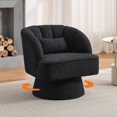 Nasitip Modern Accent Chair Teddy Bear Velvet Swivel Barrel Chair, 27.6" Round Upholstered Lounge Chair