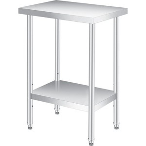 Upgrade your workspace with the Nasitip Heavy-Duty Stainless Steel Work Table, designed for both commercial and home use. Featuring a sturdy 2-tier construction with an adjustable undershelf, this table offers ample prep and storage space for kitchens, restaurants, garages, and more. The stainless steel frame has a sleek brushed finish that resists corrosion, is easy to clean, and stands up to heavy-duty tasks. With a load capacity of up to 660 lbs on the upper shelf and 450 lbs on the lower shelf, it’s built for serious performance. The shelf adjusts to three different heights to suit your needs, and the quick 15-minute assembly makes setup effortless.