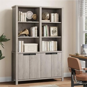 - 【Enough Storage Space】 Bookshelf with 2 cabinets for more discreet items and documents. 3 double wide open shelves with baffles for decorative items or items that need to be picked up in time. Not only does the bookcase with doors expand your storage space and keep your room tidy, but it also makes your life and work easier