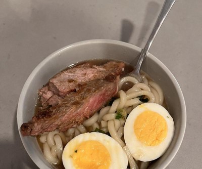 Great tasting udon when you’re in a pinch to make this at home. On par with ones you would buy at Asian supermarket. Happy Target carries this udon. One thing to note is that soup seasoning to water ratio is a bit off. I wish there was a bit more seasoning so you can make more soup for udon noodles to sit in w/o diluting the taste. I like my noodles swimming in plenty of broth.