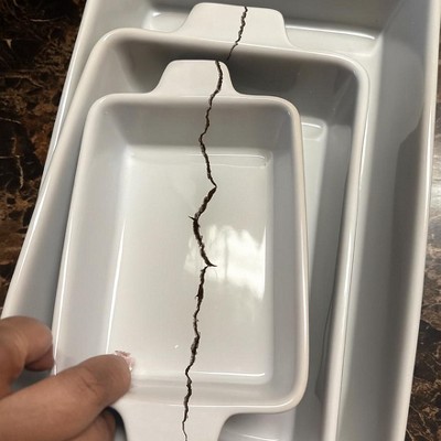 - SET INCLUDES THREE DIFFERENTLY SIZED BAKING DISHES - Each casserole pan has small handles on the sides for ease of carrying