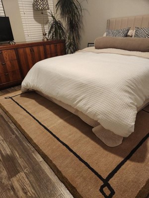 Product Name: Nate Berkus x Rugs USA - Serge Bordered Wool Cozy Area Rug, 4' x 6', Tan