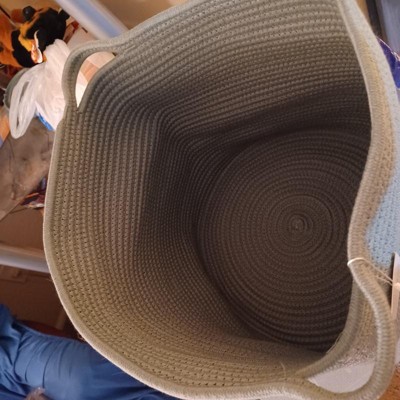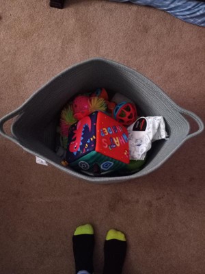 [This review was collected as part of a promotion.] This basket is huge! We are able to store so many of our kids toys in it. Not only is it spacious, but it keeps its shape and looks so beautiful in our living room! I love the color. It is very high quality. The rope is gorgeous and I am so glad it has handles!