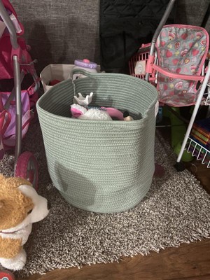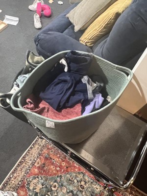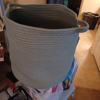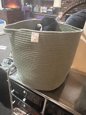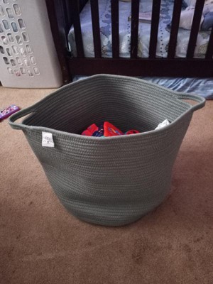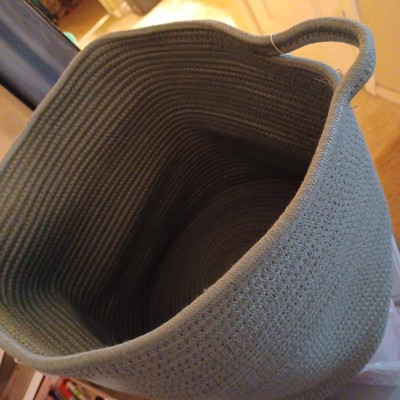 [This review was collected as part of a promotion.] For some reason I thought this basket was charcoal gray when I ordered it. But it’s actually more of a dark green! And it goes with my decor better than gray anyways. We use these rope baskets for toy storage, shoe storage…basically any way we can hide clutter! They’re so versatile and very sturdy!