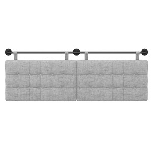 Charlie is a modern wall-mount padded headboard designed for king size beds. You’re not dreaming—you can elevate the look of your bed and add comfort in minutes as the elegant headboard is easy to install. Charlie features a textured boucle fabric hung by a sleek metal rail with adjustable brown leather straps to be hung at any height. The hanging fabric headboard can also add some softness and style to your seating area when used in an entry, dining, or banquette area behind a bench or a set of stools.