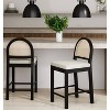 Our rattan bar stool, Bailey, is the perfect addition to your bohemian kitchen space. The upholstered seat is the perfect height for your kitchen island, and is generously cushioned with natural textured linen weave for your comfort. The contrast between the bright boucle upholstery and rubberwood frame gives it a classic feel that will blend with many color palettes. Bailey also features a beautiful 15inches backrest with its natural rattan accent weaves a basket-like look on a charming curved silhouette.