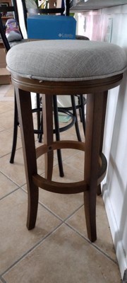 [This review was collected as part of a promotion.] This stool will be perfect around my bar height wine barrel we are making into a table. Nice quality of wood. Easy to assemble. The seat is a thick cushion which is what I was looking for. All n all a great quality stool to help complete our make over kitchen one day.