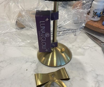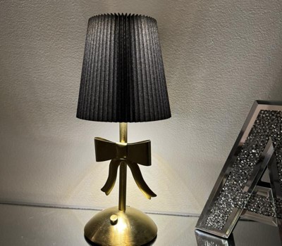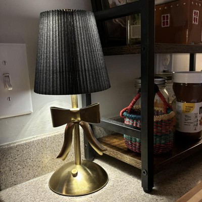 National Brand Portable and Rechargeable Includes LED Light Bulb Lamp with Black Pleated Shade and Black Metal Bow Detail