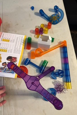 My kid loves marble runs, I mean lovessss. This one is small but mighty! It has very cool twists, turns, and wheels. And the glow in the dark marbles are dope! He has found so many different ways to configure the tracks, but he always tries to think about how to make the marbles look extra cool. The best thing about the National Geographic set is the little companion booklet. It adds a scientific approach to a toy, turning it into a valuable learning experience. It covers things like velocity and acceleration and how to run marble trials to figure out which configuration makes the fastest run. Very cool!