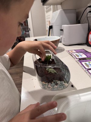This terrarium is pretty cool. My kid will love making a little Dino world and watching it grow. Comes with all of the things needed and love that it's all contained. This terrarium is also a little bit bigger which is nice.
