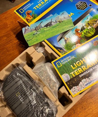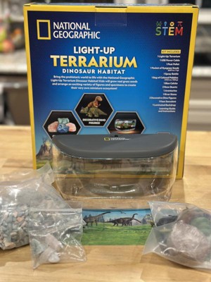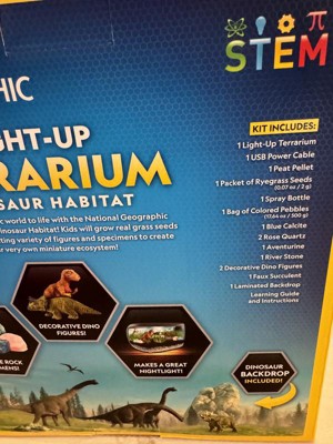 NATIONAL GEOGRAPHIC Light Up Terrarium Kit for Kids - Dinosaur Terrarium Kit, Build & Grow a Dinosaur Habitat with Real Plants, Fossils & More