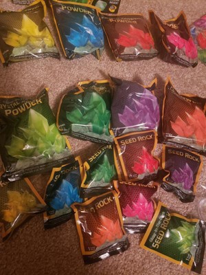 - FAST GROWING CRYSTALS - 8 growing crystals in vibrant colors (blue, pink, red, purple, green, orange, yellow, and teal).