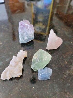 - REAL CRYSTAL SPECIMENS – Comes with 5 real crystal gems from around the world; amethyst, quartz geode, blue calcite, rose quartz, and fluorite. Start or expand your rock collection!