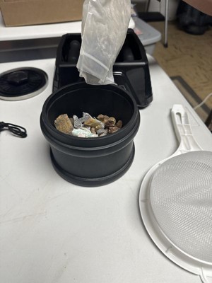 This is really good so far! I forgot to take a picture of the gemstones that come with it before tumbling (could barely determine what types they were) but attached is one after 2 days of running the tumbler on speed 3 (the highest). You can see the murky water left from eroding off the rough outer surface of the stones. It comes with one booklet that explains each step very well, and another booklet that describes each of the stones included. It’s very user friendly overall. The timer can be set to hours or days and to run for up to 10 days. It has speeds 1, 2, and 3 (higher number = higher speed). I was worried it would leak so I kept it in a dishrack that closes. After 2 days there have been zero leaks. The seal is actually super strong, so I’m not really surprised. I just never used one before and wasn’t sure what to expect. It is fairly loud… it kind of sounds like an old dishwasher. I’ve had it in the kitchen and it doesn’t really bother me, but will probably move it to a spare room or basement now that I’m comfortable it won’t leak. The kit comes with small packets of different sized grit (coarser for beginning stage, then less coarse to smooth further). I put all stones in and added the entire packet for grit one. I see a refill kit is available with what looks like 4 sets of grit sizes and more stones. Personally, I’ll likely purchase the larger containers available on Amazon to tumble my own rocks.