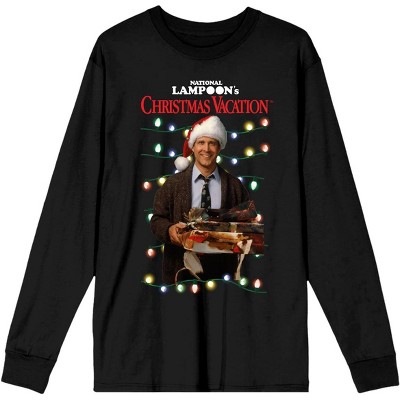 CUSTOM DESIGN: Clark Griswold wears a Santa hat and carries gifts on this graphic tee while strings of Christmas lights surround the character. Fans of National Lampoon's Christmas Vacation will love this fun design.