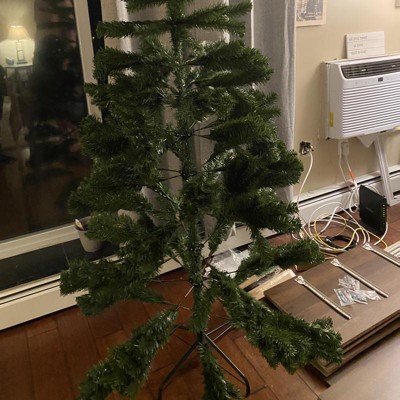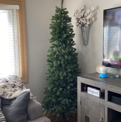 I love this slim tree! It fits perfect in my small space. You must fluff the branches to make tree full. The only problem is the base, it moves easily. You must secure it before making any adjustments.
