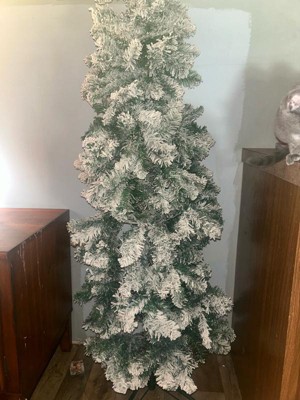 The Acacia Pencil Slim tree offers an extra thin profile making it a great choice for display in corners or in areas where floor space is limited. This tree features flocked branches giving the appearance of freshly fallen snow. Crafted with high quality materials and hinged branches for easy set up and includes a sturdy metal folding stand. For indoor display only.