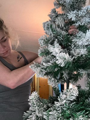 [This review was collected as part of a promotion.] A beautiful flocked tree, its small enough for smaller spaces and fits about any where. The flock does come off easily when touched. It’s the perfect height for shorter ceilings. It was so easy to put together and take back apart and easily stored.