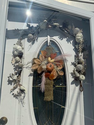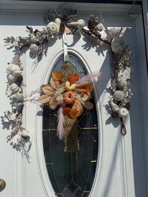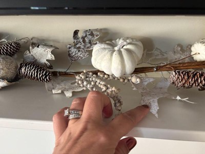[This review was collected as part of a promotion.] This is such a beautiful fall decor item. I love the way it was packaged and nicely and it’s easy to store away I loved the little pumpkins and the gourds and the white. Effect of it brush the branch is flexible and not too loose so you can bend and maneuver it to fit which ever way you want. I love that when I was putting it up there was not any type of fallout from the decorations or breakage I think has great durability and it’s a great addition to any fall decor, reasonably priced it can also be used as a part of a table runner. I decided to put it over my door because I wanted it to match my already existing fall decor.