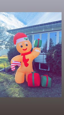 [This review was collected as part of a promotion.] This inflatable gingerman is absolutely adorable! It was super easy to set up and inflated quickly without any issues. The colors are bright, and it would look better in the yard — definitely an eye-catcher for the holidays! My little sister loved it.