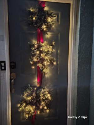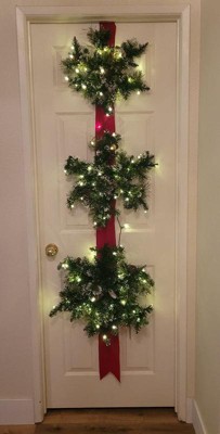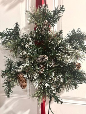 [This review was collected as part of a promotion.] The National Tree Company 70in Pre-lit Glittery Bristle Pine Snowflake with White Lights is a beautiful addition to any Christmas decor. It fits well over the door and is easy to assembly because you basically just pull it out of the box and add batteries. As much as I love it, it does have a flaw. The battery pack is very heavy, and when you open and close the door, it slams on the door. I also had to move the battery pack to the center because it was zip-tied on the left-hand side, which was making the bottom snowflake and ribbon lean off-center. Other than that, it is so beautiful and I love it on a door we don't open as often.
