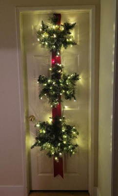 [This review was collected as part of a promotion.] Classy and festive. Get ready for a glitter explosion when you open the box!! This came already assembled and seems well made. I have to buy D batteries as I don’t keep them on hand. My door is tall and this seems a little shorter that I would like it to be.