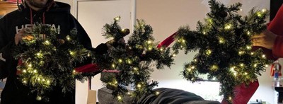 [This review was collected as part of a promotion.] This Christmas wreath is super cute. Its a duo package meaning it comes in twos. Which I find to be really cool. The pines are super pointy though but seem quite durable.