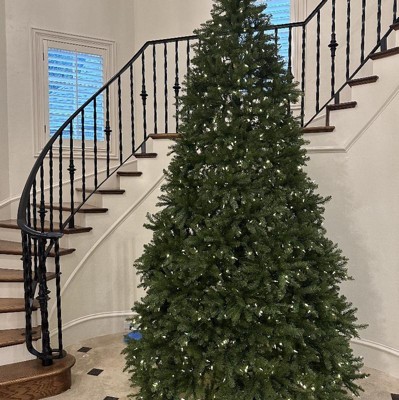 This Dunhill Fir tree is pre-strung with 900 Dual Color lights that change from warm white to multicolor with the touch of a button. The bulbs are low-voltage LEDs that are energy-efficient, long lasting and cool to the touch. Included is a foot pedal switch to control 9 different light colors and actions. Hinged branch construction makes assembly quick and easy.
