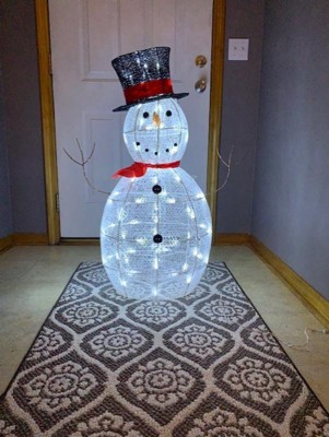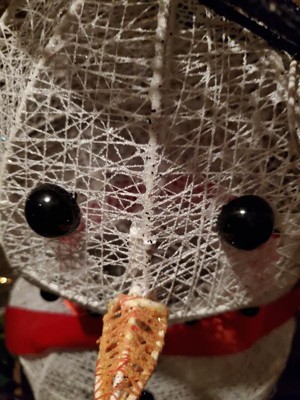 [This review was collected as part of a promotion.] The family loved this outdoor White Sisal Snowman with LED lights. It was super easy to put together - took me approximately 5 minutes and held up well in the rain and snowy weather. Still looks new after being out for one holiday season. HIghly recommend!