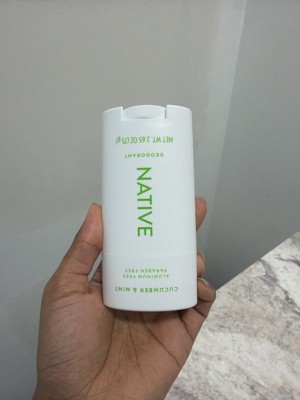 [This review was collected as part of a promotion.] NATIVE mint and cucumber stick has a very fresh smell that I appreciate in specially in summers. The deodorant is easy to glide on and has a lasting effect. Aluminum free. Using native for sometime and avoiding spray deodorants for underarms helped brighten them.