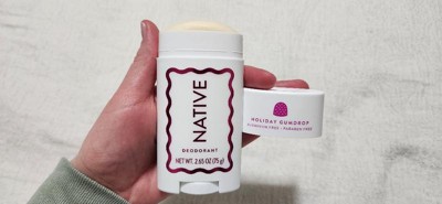 [This review was collected as part of a promotion.] I love the native deodorant series, especially this holiday scent! It feels good on your skin and minimally gets on your close (comes off easily too). My go to.